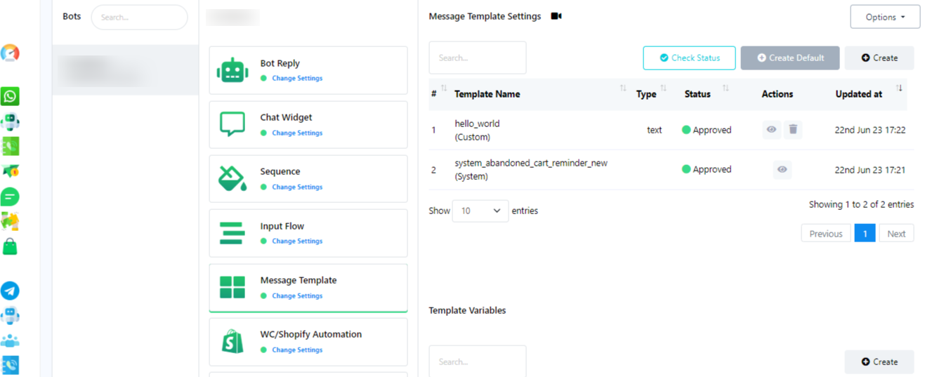 - Go to Chats Turn Dashboard and navigate to the Bot manager section.